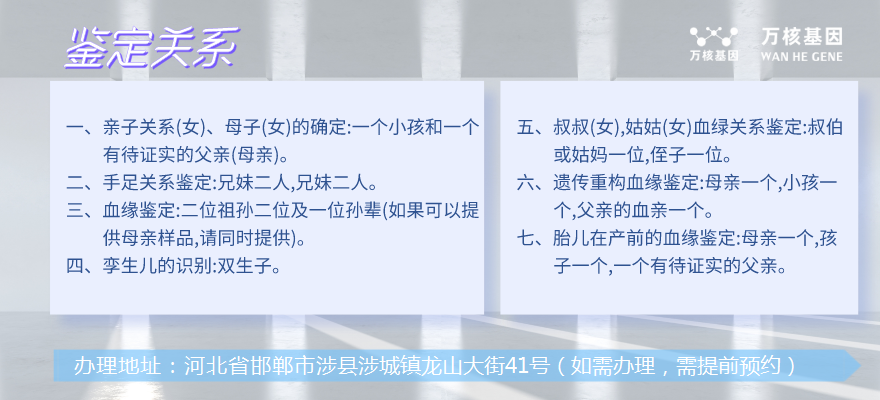 又例如,在尋根問祖的過程中,一個人可以通過涉縣個人dna親子鑒定來確認自己的親屬關(guān)系,這也可以幫助他更好地了解自己的家族歷史和文化傳承。