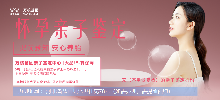 如果你需要在鹽山辦理孕期無創親子鑒定,可在線咨詢鹽山萬核親子鑒定服務機構。孕期親子鑒定只需采集準媽媽10ml外周血,疑似父親可以采集血液樣本,或者是血痕、精液、精斑、帶毛囊的頭發、指甲、唾液、口香糖、口腔拭子、礦泉水瓶、牙線、煙頭等(任選其一即可)等生物材料,測試它們之間的DNA信息是否匹配。這種測試可以確定一個孩子是否為某個人的親生子女,或者確定兩個人是否具有親緣關系。
