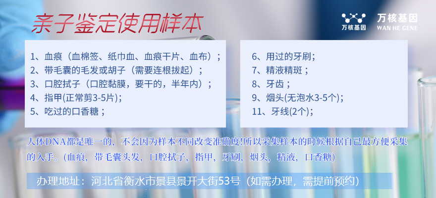 總而言之,選擇適合自己的樣本開展親子鑒定是很重要的。只有在采集環節中細心、認真細致地實際操作,才能確保鑒定報告的準確性。因而,一定要跟景縣萬核親子鑒定服務中心相關工作人員掌握采集步驟及注意事項,以免引起二次補樣子的狀況發生。