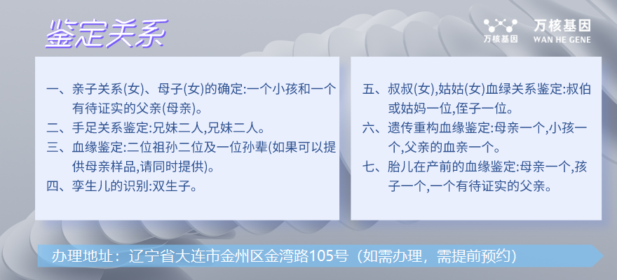 在大連,上戶口親子鑒定可以用于:落戶、升學、留學等司法中,上戶口...[詳細]