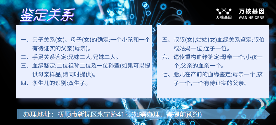 撫順順城親子鑒定類型及價格