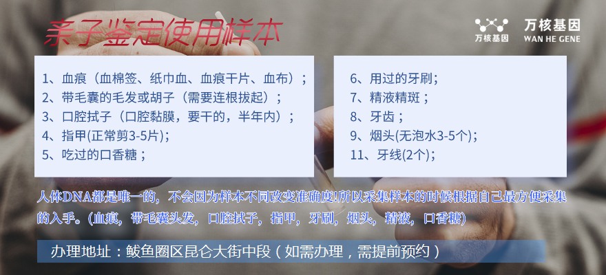 總而言之,選擇適合自己的樣本針對DNA親子鑒定來說是非常重要的。我們要盡可能的采用微創手術量腔試子或口腔拭子做為樣本,防止采集秀發,以保證親子鑒定準確性和安全性。