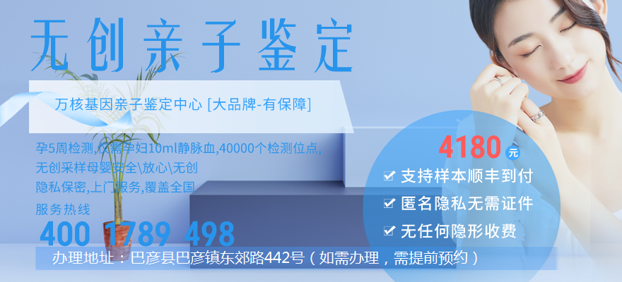 此外還有隱私個人親子鑒定,如:懷疑孩子非親生,又不想其他人知道的。當然,這只是其中的一些例子,更多鑒定問題在線咨詢:4001789498,巴彥辦理地址:巴彥縣巴彥鎮東郊路442號(如需辦理,需提前預約)。