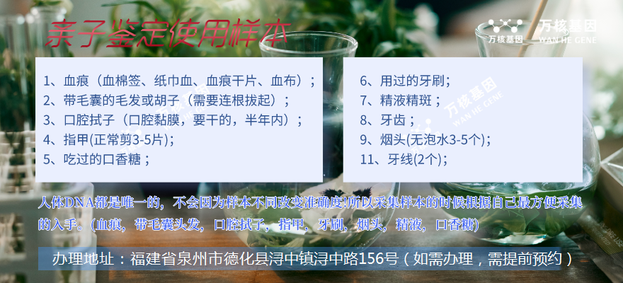德化隱私個人DNA親子鑒定可以提供的檢測樣本有哪些?