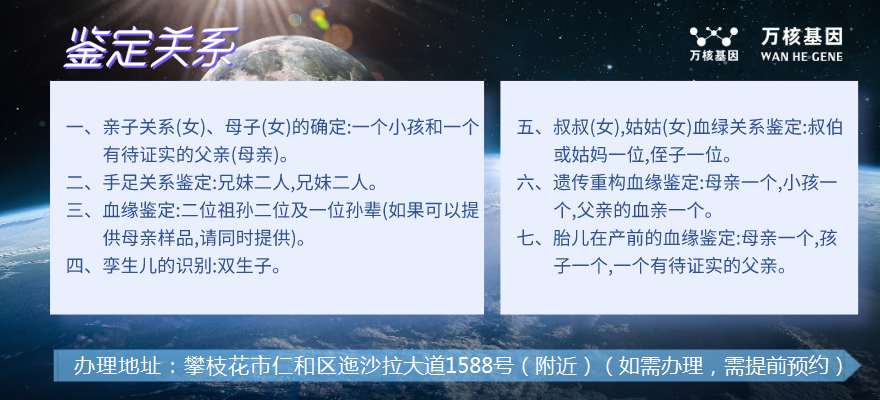 攀枝花仁和做親子鑒定地址電話...[詳細]
